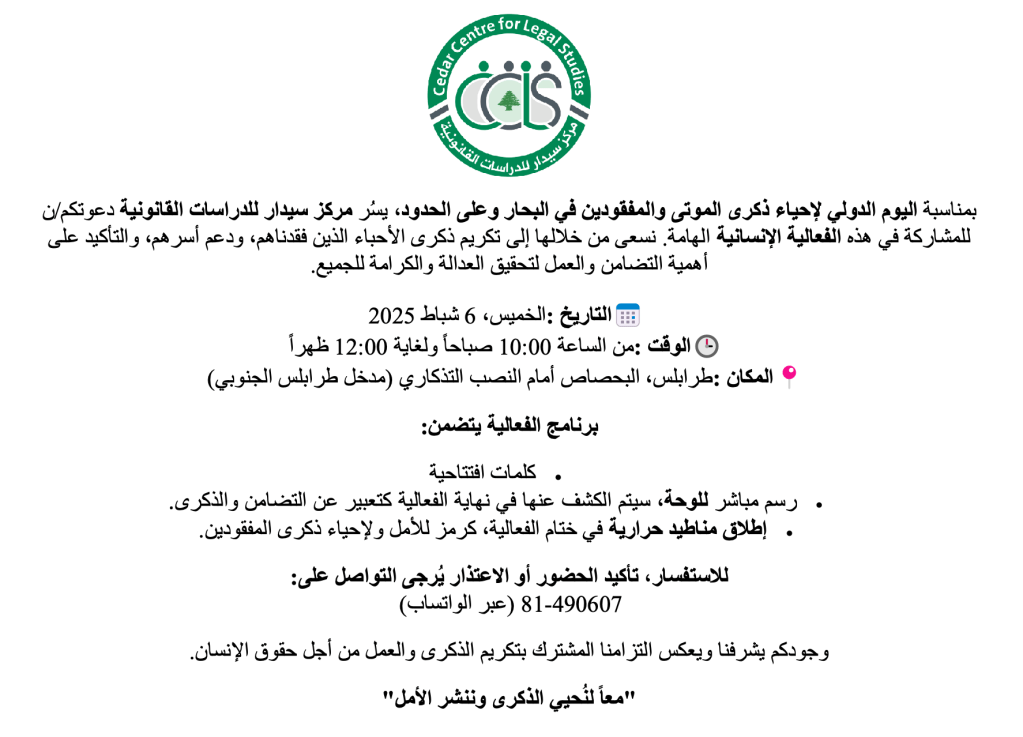 اليوم العالمي لمكافحة نظام الموت على الحدود والمطالبة بالحقيقة والعدالة والتعويض لضحايا الهجرة و عائالتهم